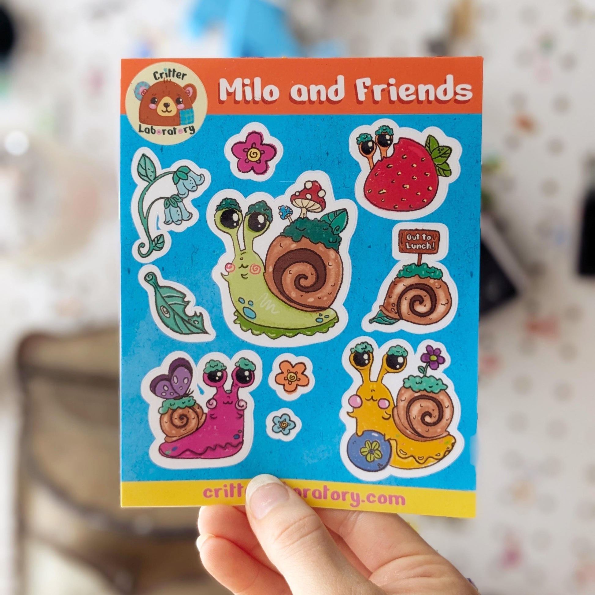 These stickers are based off of Milo the Snail plushy. I wanted to give a sneak peek into Milo's life with his little snail friends ✨ . Each sheet features five, hand-drawn snails, (plus a few extra little stickers) perfect for adding a touch of snaily fun to your belongings.