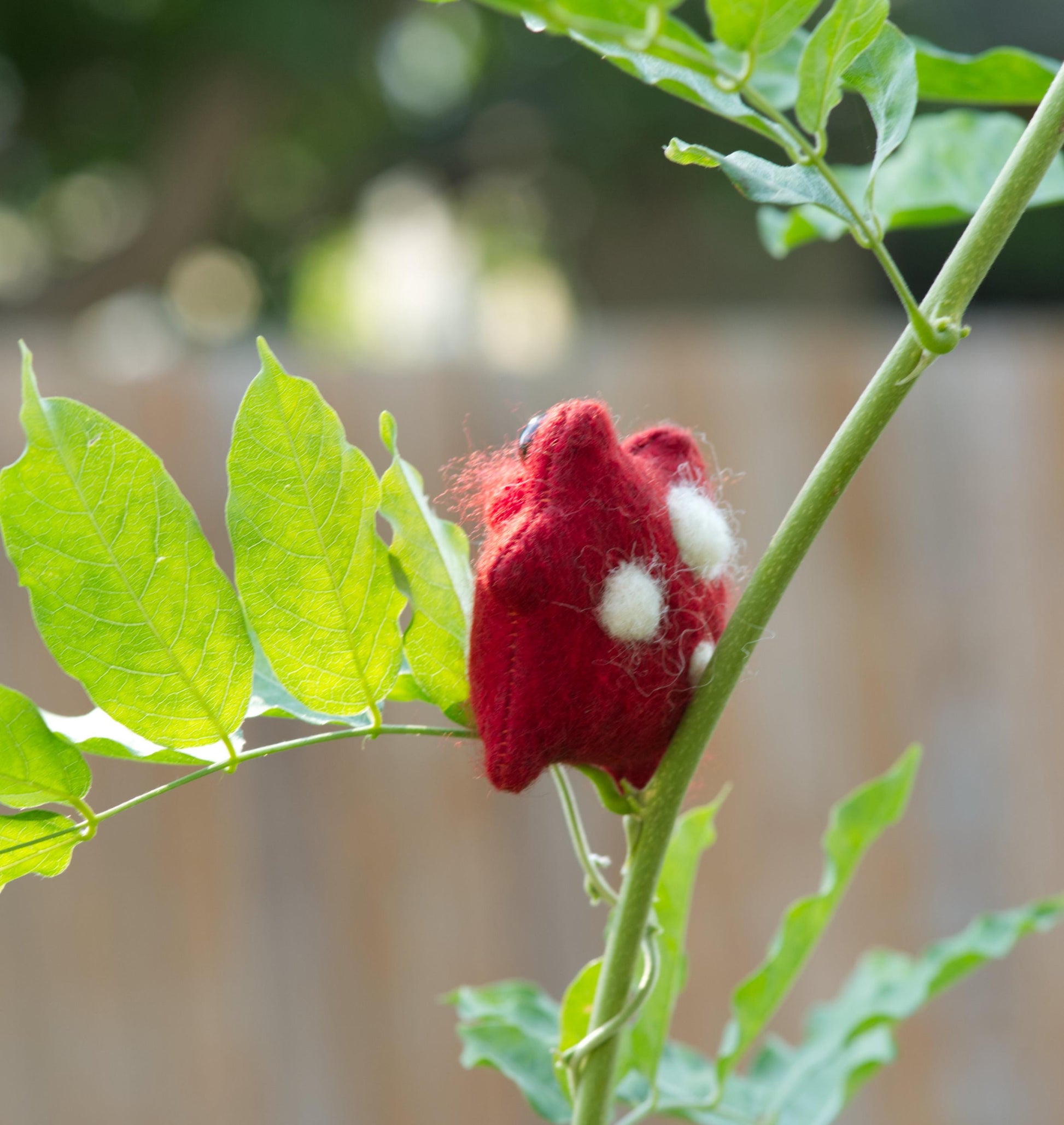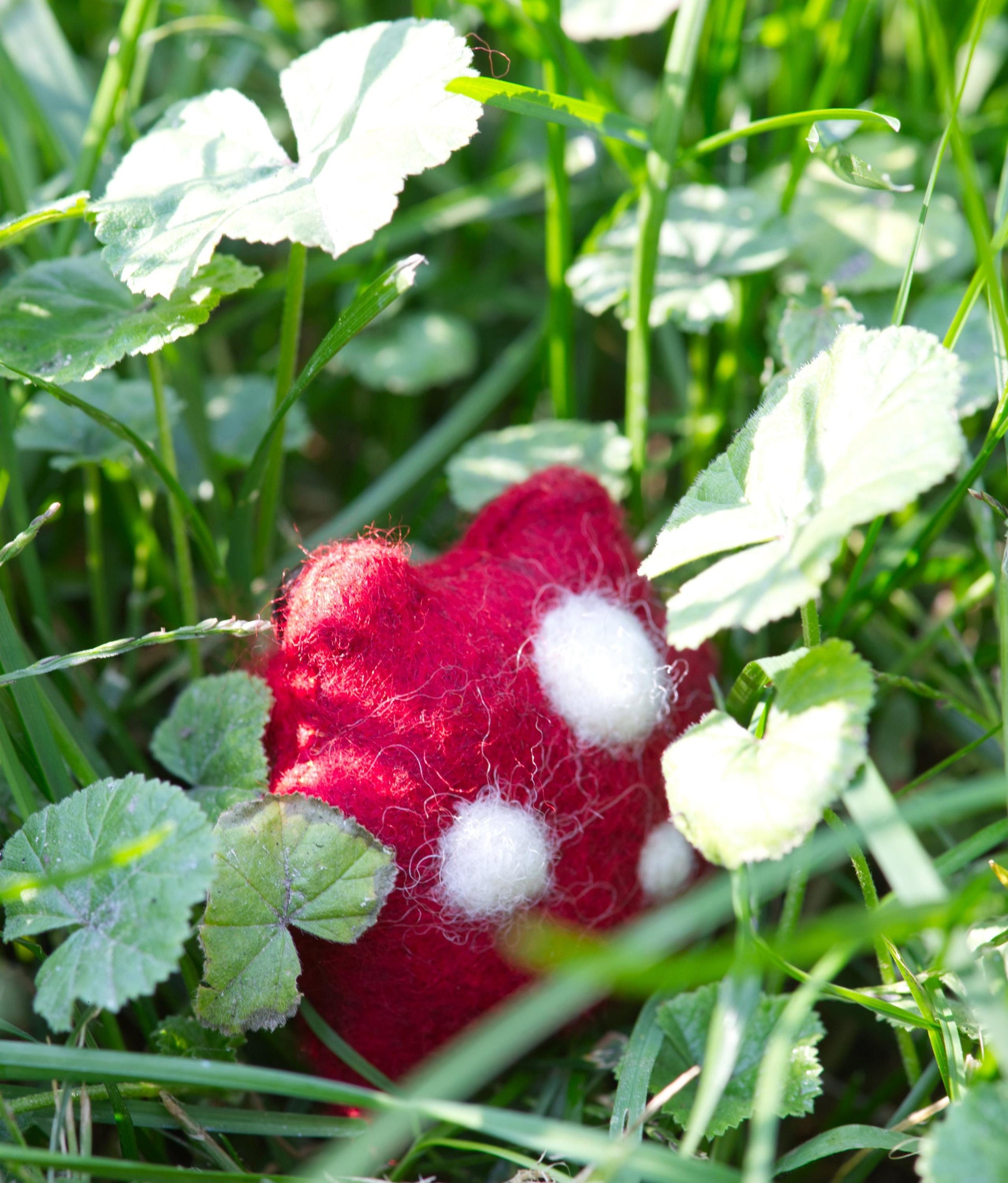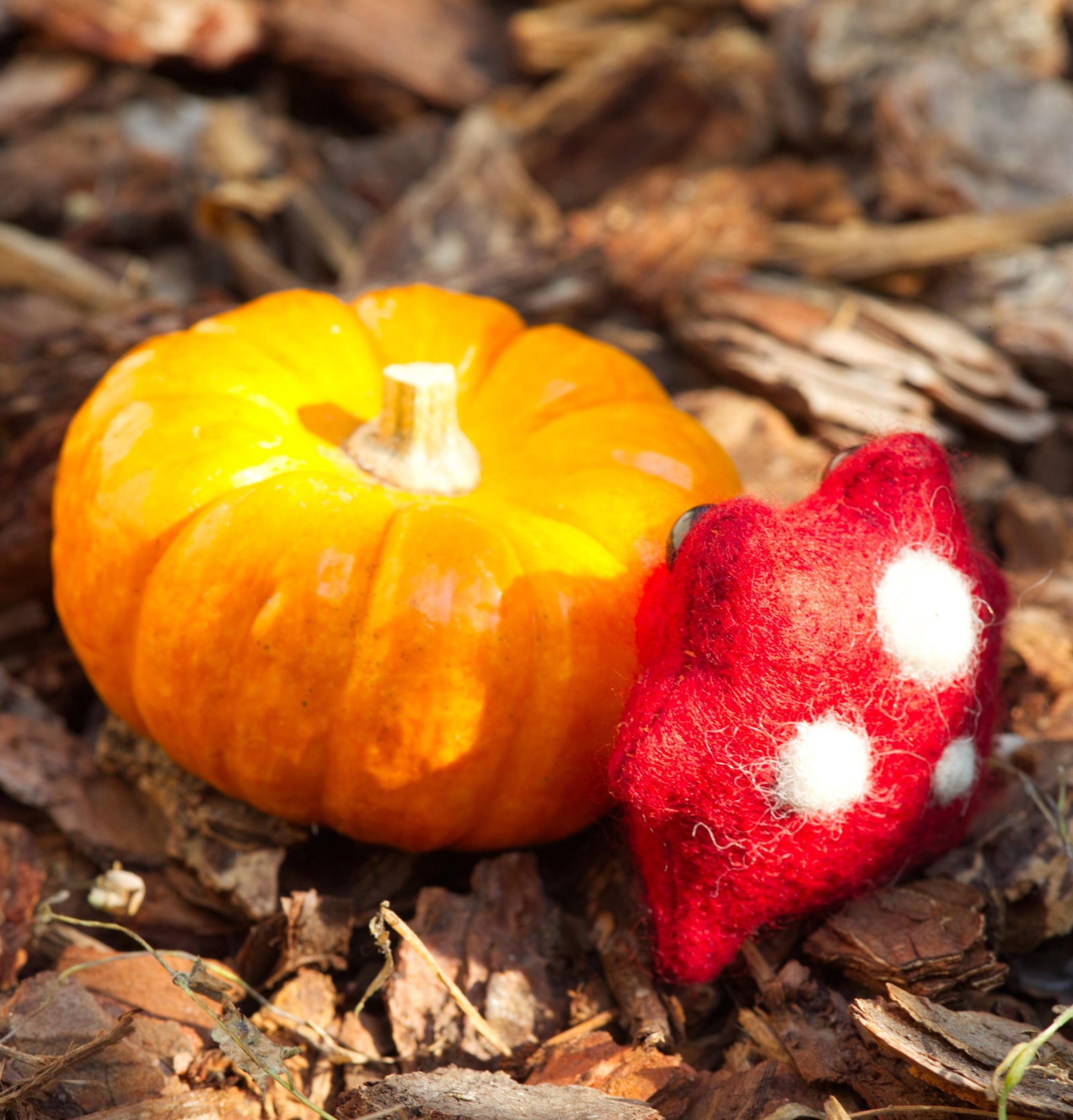 Merino wool blend felt, wool roving, glass micro beads, safety eyes and poly-fill