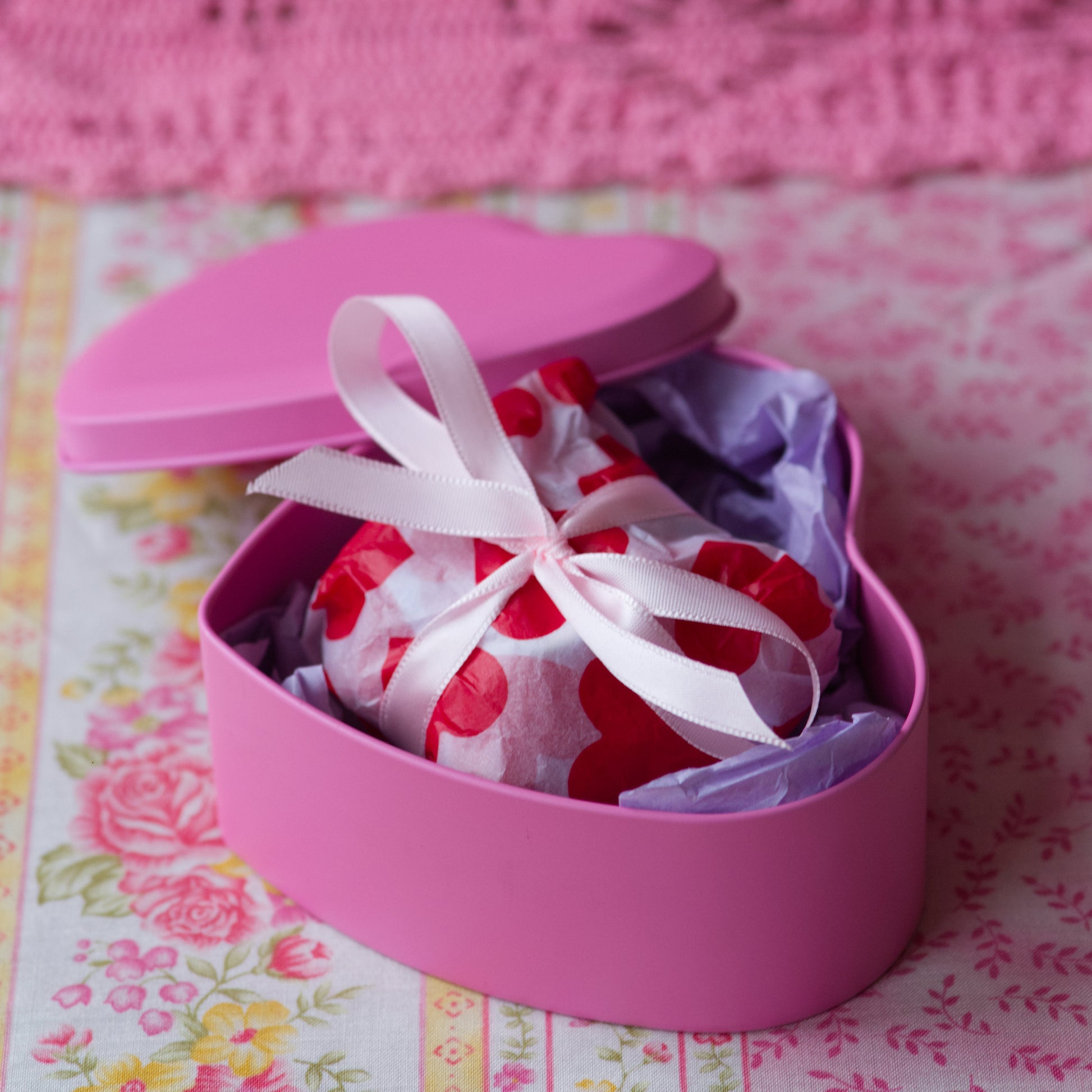 Sprinkles arrives ready for gifting (to someone else or yourself!) in an adorable metal tin with heart-themed tissue paper and a pink ribbon.